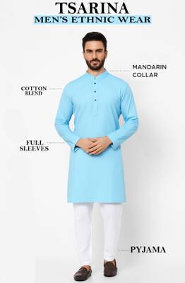 Men Cotton Blend Kurta Pyjama ...