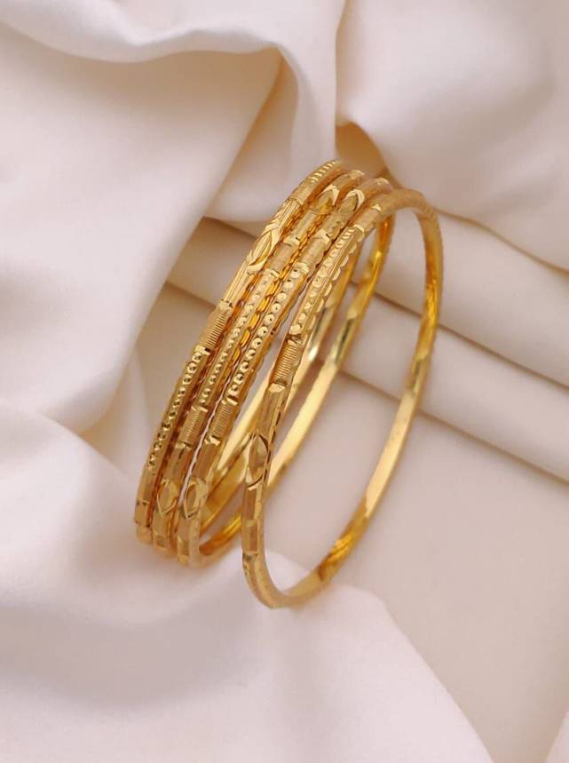 Introducing our Ethnic Gold-Plated Bangles Set, a must-have addition to your jewelry collection. These exquisite bangles feature a high-quality gold-plated finish, showcasing intricate patterns and filigree work. Crafted with the utmost attention to detail, these durable bangles are designed to last. The set includes multiple bangles, allowing you to stack them together or wear them individually. Perfect for weddings, festivals, or any special occasion, these bangles add a touch of cultural authenticity and elegance to any outfit. Don't miss out on the timeless beauty of these Ethnic Gold-Plated Bangles, available.