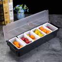 Our portable caddy have enough space to hold party food items, such as olives, pickles, fruit slices, nuts, seeds, gray, sauces and salad dips. Need to keep your food nice and cool? Underneath the trays, there is space for you to place ice cubes, which will keep your fruits and veggies nicely chilled and ready to serve. To thoroughly clean this condiment caddy, just remove all the trays and place them on the top rack of your dishwasher. Wipe down the rest of the caddy with a clean cloth. Want to keep all your food items in one place? Use our portable caddy for your taco parties, outdoor barbecues, picnics, birthdays and buffet settings.