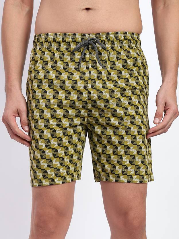 T.T. Men Regular Fit Cotton Polyster Printed Short With Zip Pocket Pack Of 1-Olive