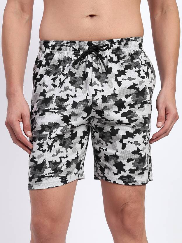 T.T. Men Regular Fit Cotton Polyster Printed Short With Zip Pocket Pack Of 1-Grey Camouflage