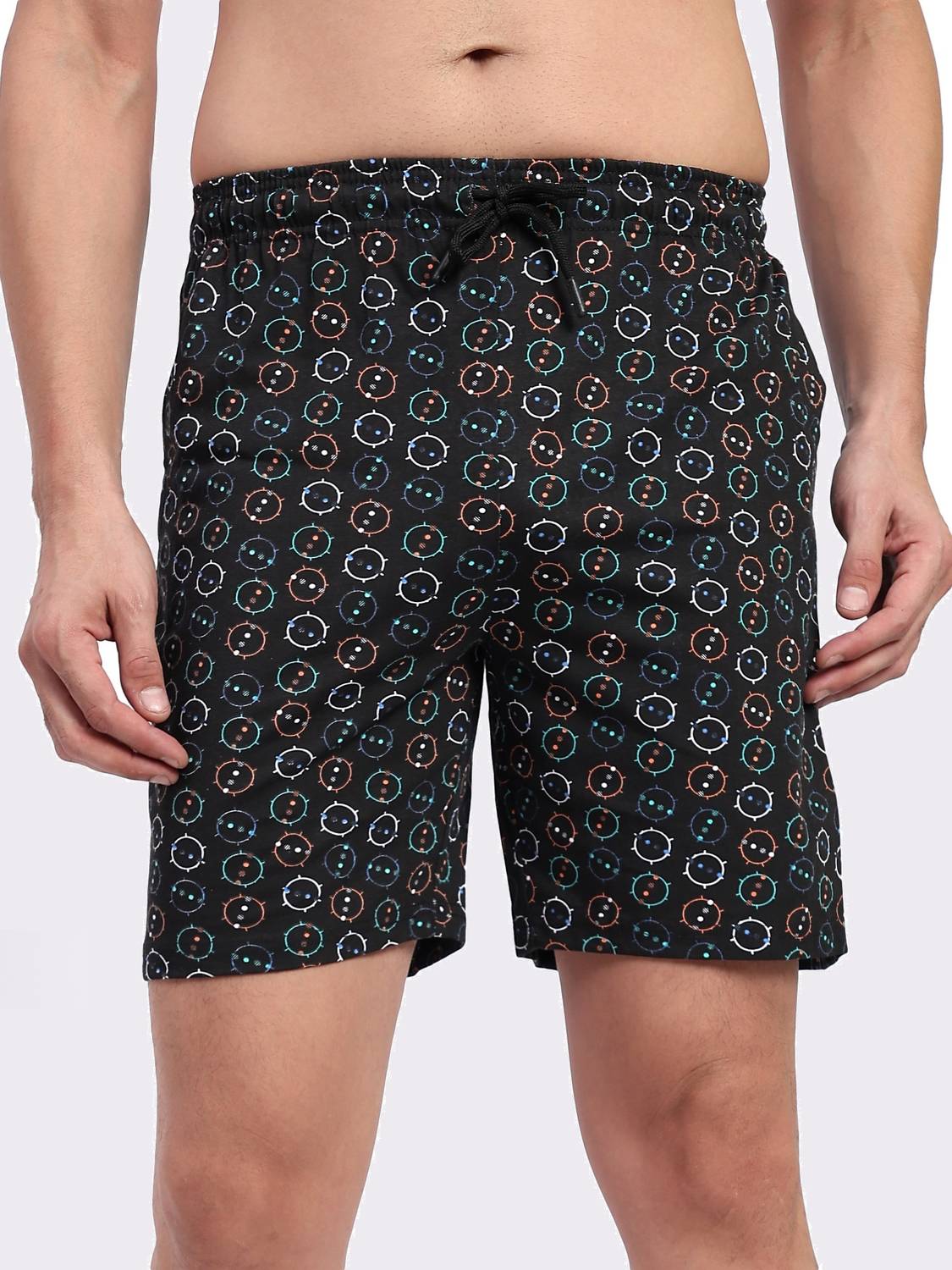 . . COOL MEN'S PRINTED SHORTS TO BE WORN AS LOUNGE WEAR, NIGHTWEAR MADE FROM COTTON RICH FABRIC MODERN SLIM FIT SOFT ELASTIC DUAL SIDE POCKET WITH SECURED ZIPPER LABEL FREE FOR ALL DAY COMFORT DURABLE BROAD WAISTBAND WITH FLAT INNER DRAWSTRING