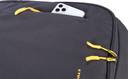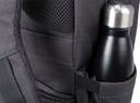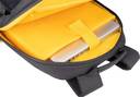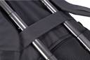 Strap for attachment to trolley. Ergonomic backrest with safety pocket. Padded and adjustable shoulder straps. Side pockets for bottle and umbrella. Backpack in 100% recycled fabric from PET bottles. Double internal pocket for laptop and tablet.