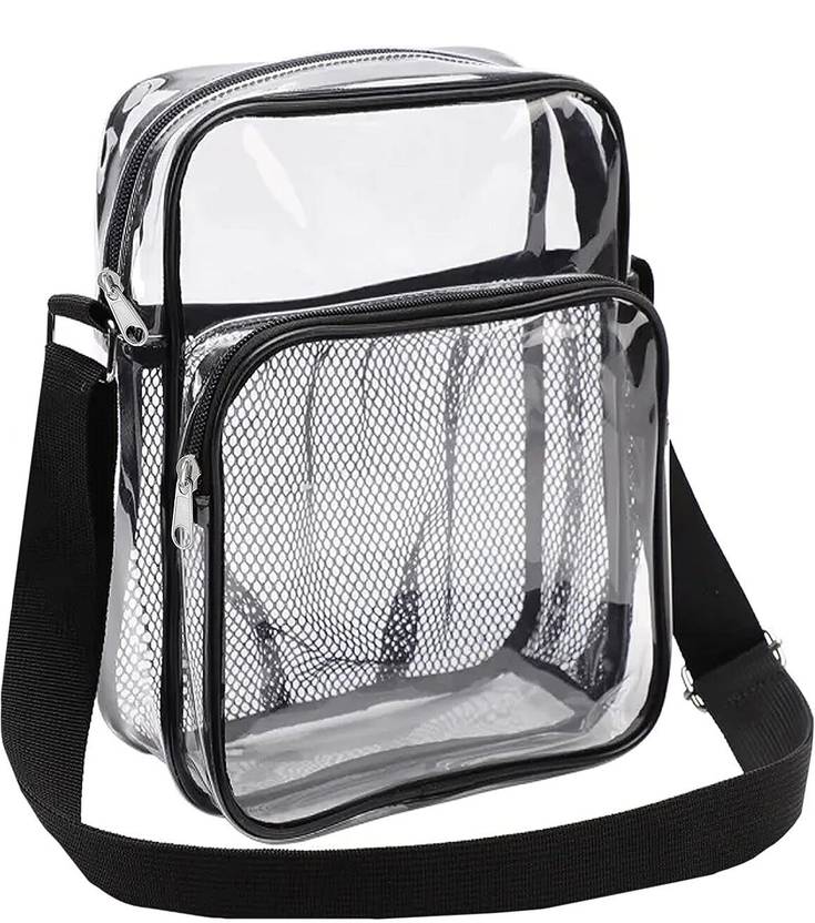 Transparent PVC Sling Bag with Zipper Closure & Adjustable Strap for Women & Men