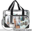 TULMAN Transparent Toiletry Bag for Women Cosmetic Bags with Handle & Zipper Handbag , Travel Toiletry Kit (White)