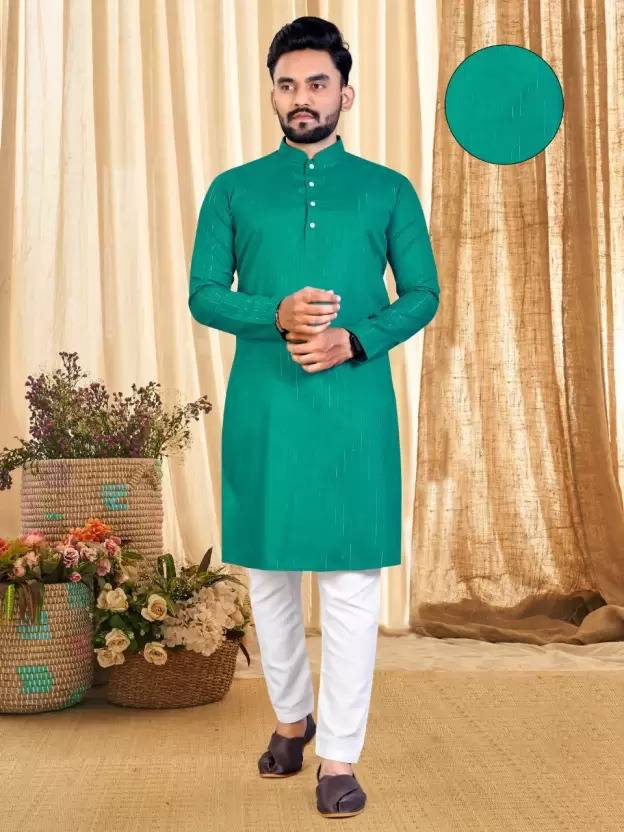 TULSSIKAA Men Solid Straight Kurta (Green)