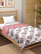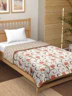 TUNDWAL'S Floral Double Dohar for AC Room (Cotton, Peach lotus)