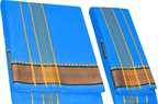 Crafted using a plain, solid-coloured fabric, both the dhoti and the Angavastram feature stunning, traditional-style woven borders, called ‘Karwati Kath’. Flaunting a striking zigzag pattern, these borders come adorned with meticulously interwoven triangles, flanked by contrasting edges. Moreover, the vertical stripes woven at the pallu further elevate its festive appeal. This unstitched dhoti can be draped in various ways, depending on local protocols and personal style.