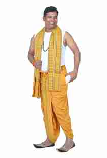 SAC SHREE APARAJEET CREATIONS Men's Mango Colour Panjakejam Readymade dhoti and towel set Free size 100%cotton Self Design, Striped Men Dhoti