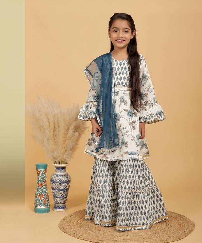 If you Love ethnic wear, then this whole set is for you. It is a set of twoAnd Three Psc, a straight Printed Solid Cotton kurta with Bottom. It is crafted from Cotton fabric with Love. Cambric Cotton we crafted is very smooth and rich for skin so its very comfortable for your kids And Girls.