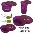 TUPPERWARE New Classic Lunch Set Airtight 4 Container + Salt Pepper 7Ml +Bag (Pack of 6) 5 Containers Polypropylene Office Lunch Box (1357 ml)