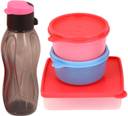 TUPPERWARE New Model Lunch Set Each Box Capacity(450ml, 450ml, 170ml) Bottle 500ml With Bag 4 Containers Plastic Office Lunch Box (1570 ml)