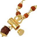 Turanto Trishula Damaru Locket With Puchmukhi Rudraksha Mala Gold-plated Wood Chain Agate Gold-plated Plated Alloy Necklace Set
