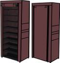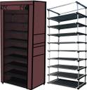 QURACK Multipurpose 9 Tiers Shoe Rack with Zip Door Cover&Side Pockets,Multiuse Storage Plastic Shoe Stand (Brown, 9 Shelves, DIY(Do-It-Yourself))