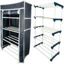 TURBOMAX 4Tiers Book Shelf Plastic Rack With Cover Wardrobe Portable Multipurpose Folding Plastic Open Book Shelf (Finish Color - Black, DIY(Do-It-Yourself))