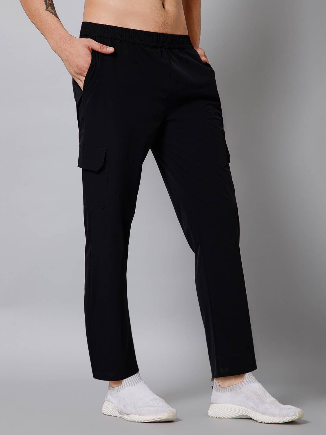 Featuring a classic solid color design, these men's cargo pants provide a timeless look that effortlessly pairs with your favorite Turnfit cotton t-shirts, jackets & sports shoes. Whether you're embarking on an outdoor adventure or simply running errands, these trackpants for men are up to the task. The cargo pockets add functionality to your style, offering ample space to carry essentials while maintaining a rugged aesthetic. These Black Cargo pants for men are designed to keep up with your active lifestyle.