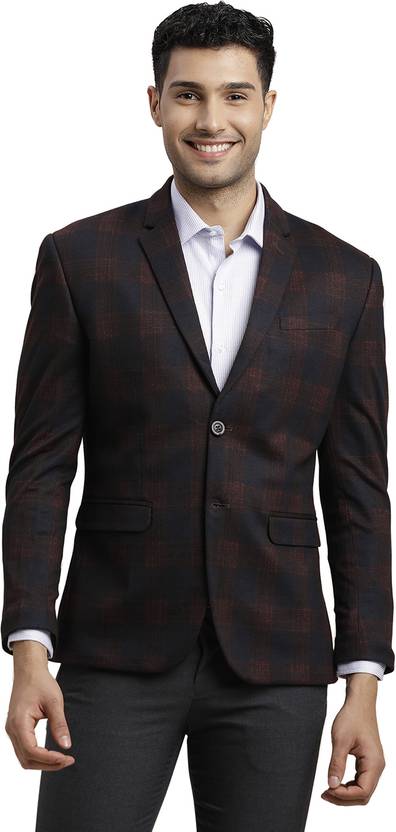 Men Checkered Single Breasted Casual Blazer (Brown)