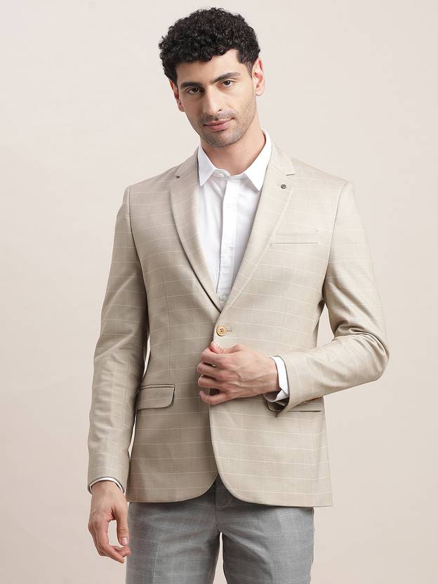 TURTLE Checkered Single Breasted Casual Men Blazer (Grey)