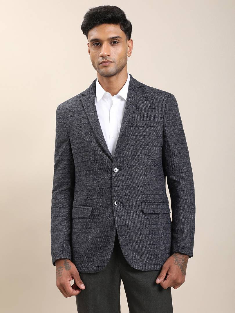 TURTLE Checkered Single Breasted Casual Men Blazer (Grey)