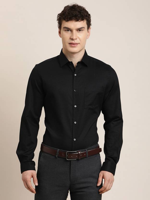 TURTLE Men Slim Fit Self Design Spread Collar Formal Shirt