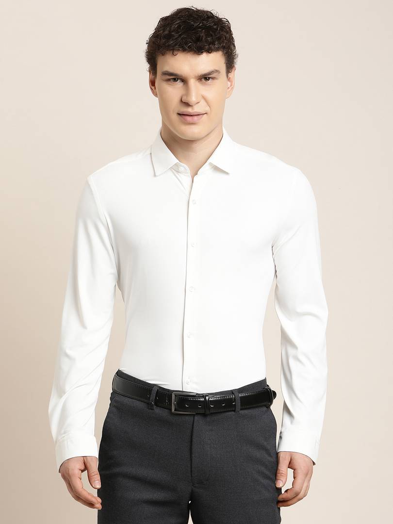 TURTLE Men Slim Fit Self Design Spread Collar Formal Shirt
