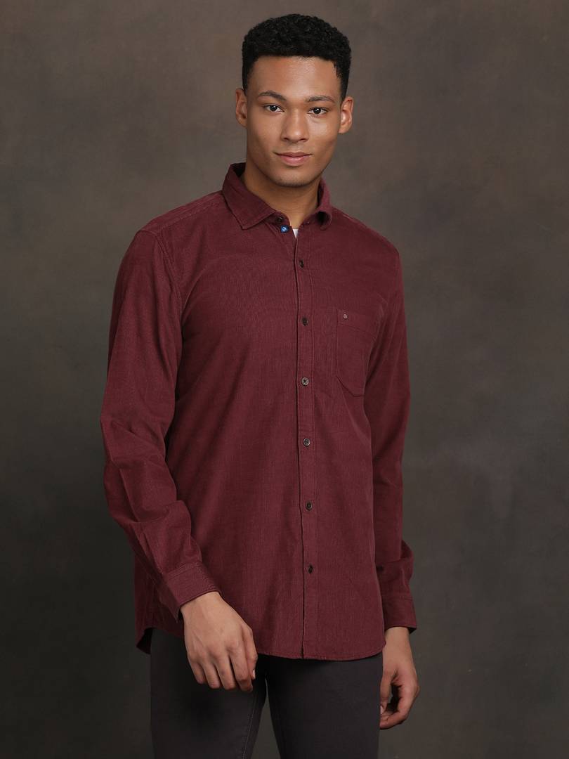 TURTLE Men Solid Casual Maroon Shirt