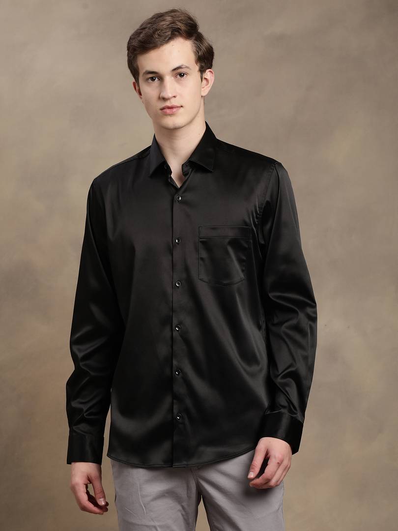 TURTLE Men Solid Formal Black Shirt