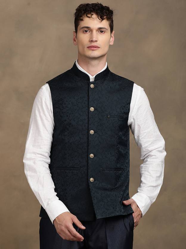 Elevate your wardrobe with our sophisticated Men's Nehru Jacket, a timeless piece that seamlessly blends tradition with modern flair. Crafted from premium, breathable fabric, this jacket is designed to offer both comfort and style.