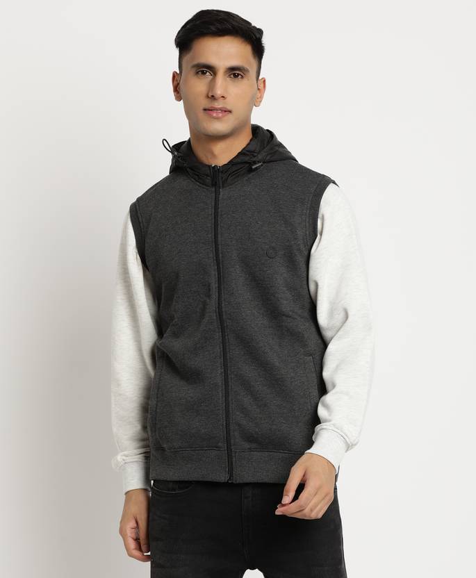 Men Sleeveless Solid Hooded Sweatshirt