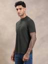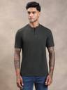 Men Solid Henley Neck Cotton Blend Dark Green T-Shirt