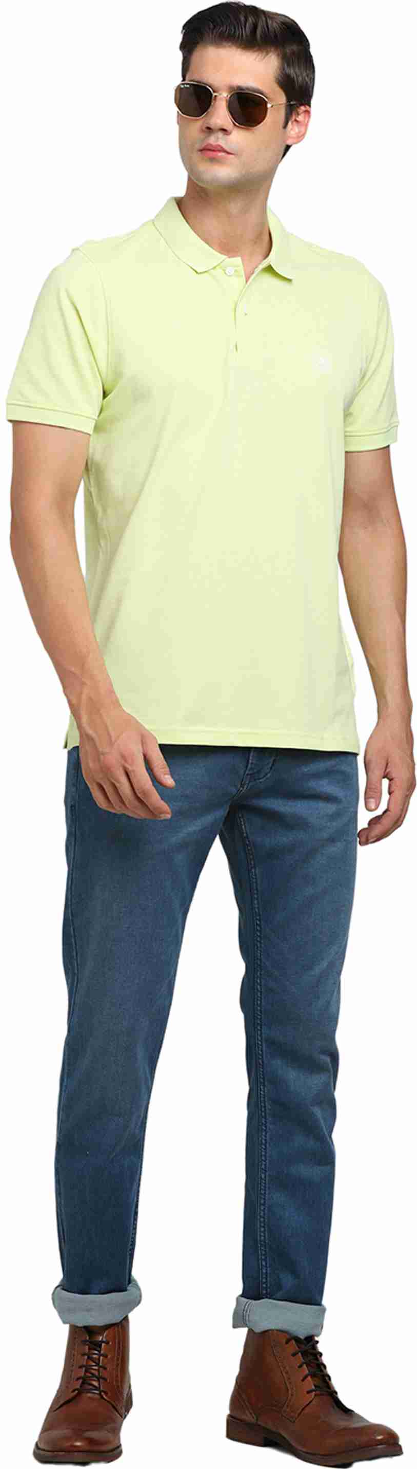 Men Solid Polo Neck Cotton Blend Green T-Shirt