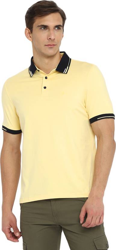 Men Solid Polo Neck Cotton Blend Yellow T-Shirt