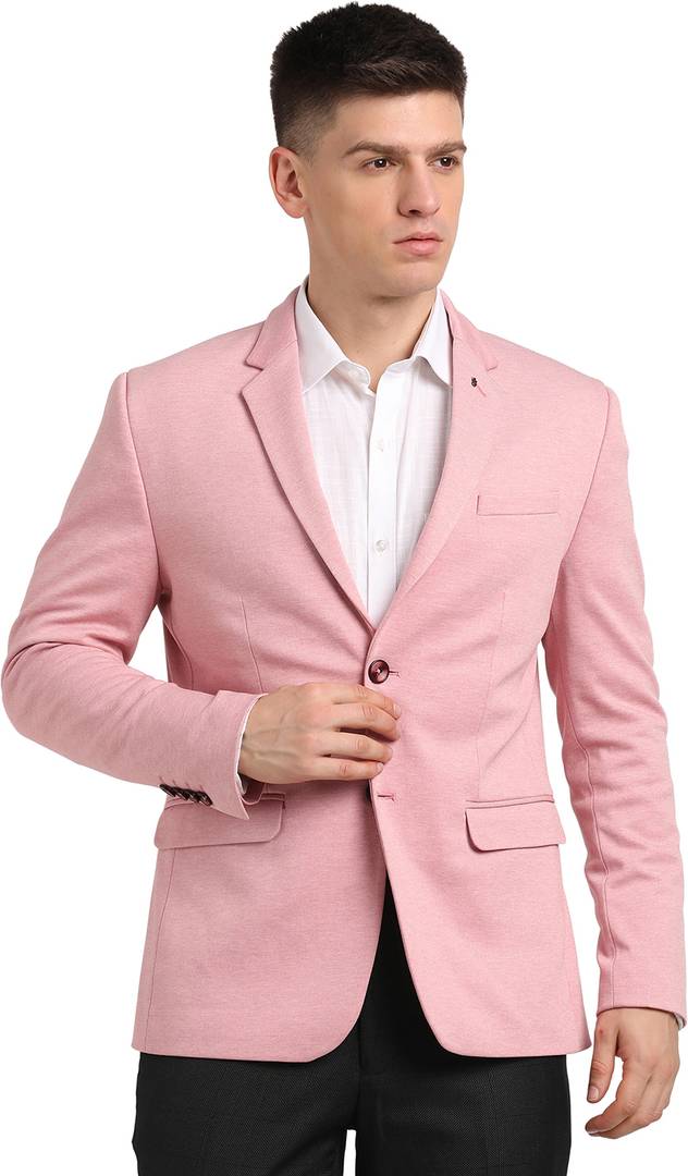 TURTLE Solid Single Breasted Casual Men Blazer (Pink)