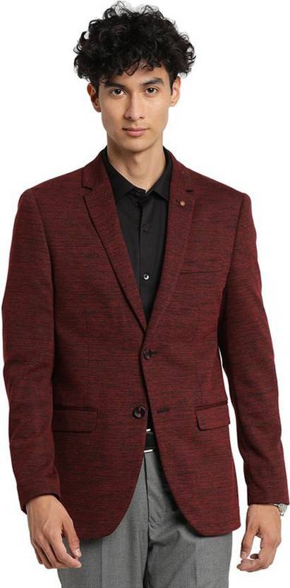 TURTLEΒ Men Solid Single Breasted Party BlazerΒ Β (Maroon)