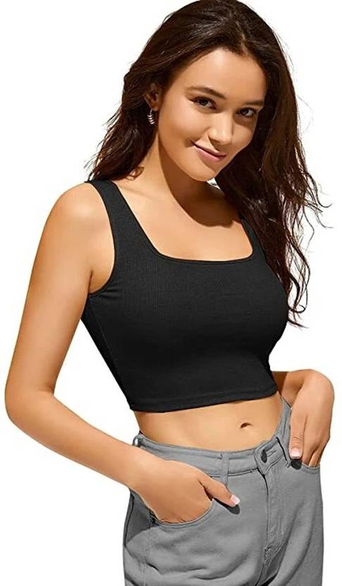 Casual Sleeveless Solid Women Black Top