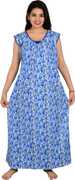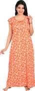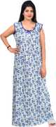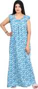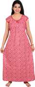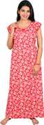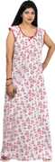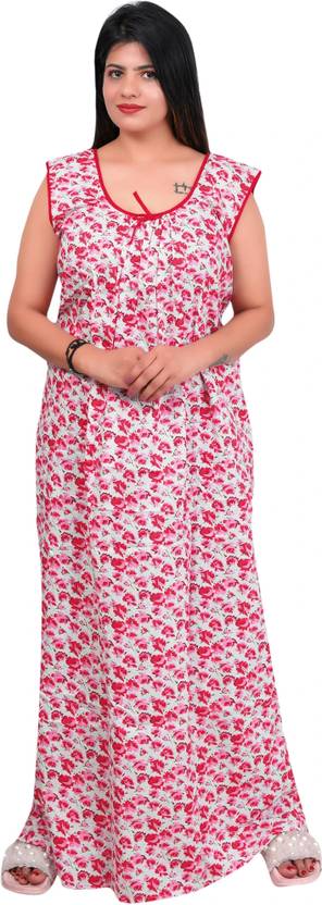 Women Pure Cotton Nighty Sleeveless Rose Printed, Sleeveless Maxi Nighty Dresses (Red)