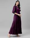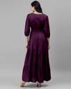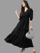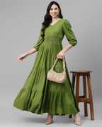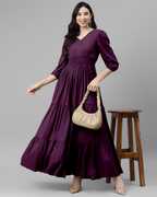 Designer Solid V-Neck Tiered Long Dress Flared Maxi Kurti for Women,