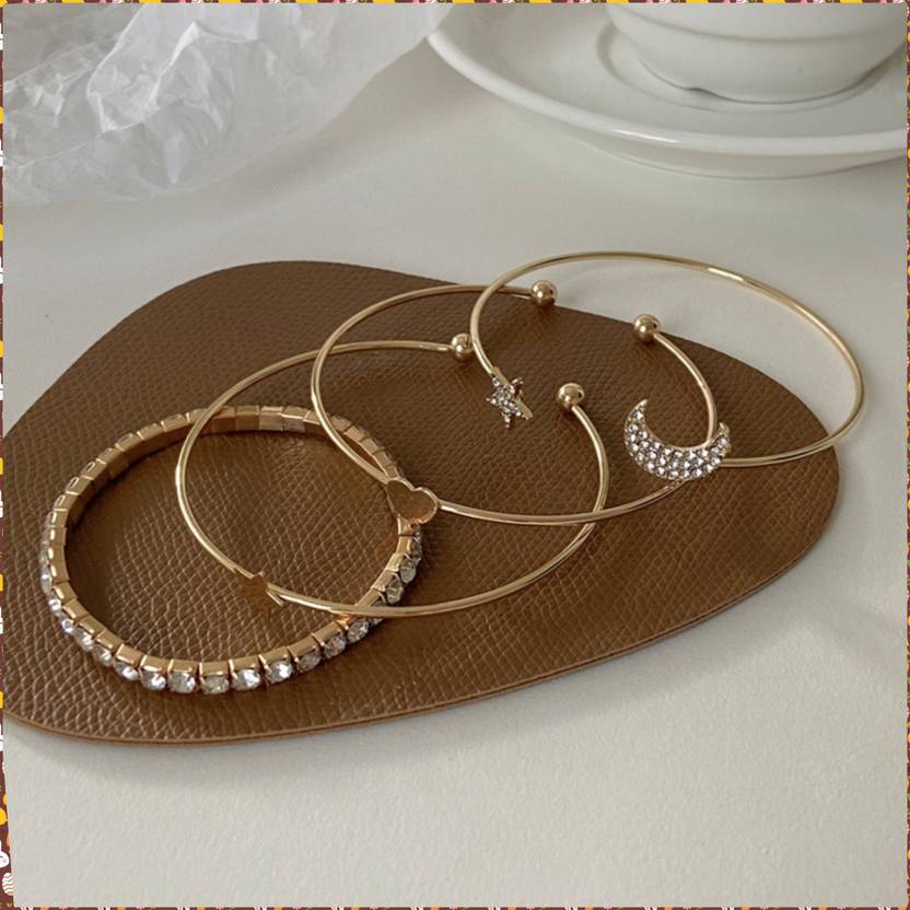 Stylish Studded Moon Star Heart Combo Of 4 Bracelet For Women And Girls. This Modern Stylish Bracelet Is Perfect To Your Fashion Jewellery Collection. These Are Also Ideal For Special Gifts For Girls For Birthday, Wife, Best Friend, Valentine Gifts For Girlfriend, Wedding Gifts And Anniversary Gifts.