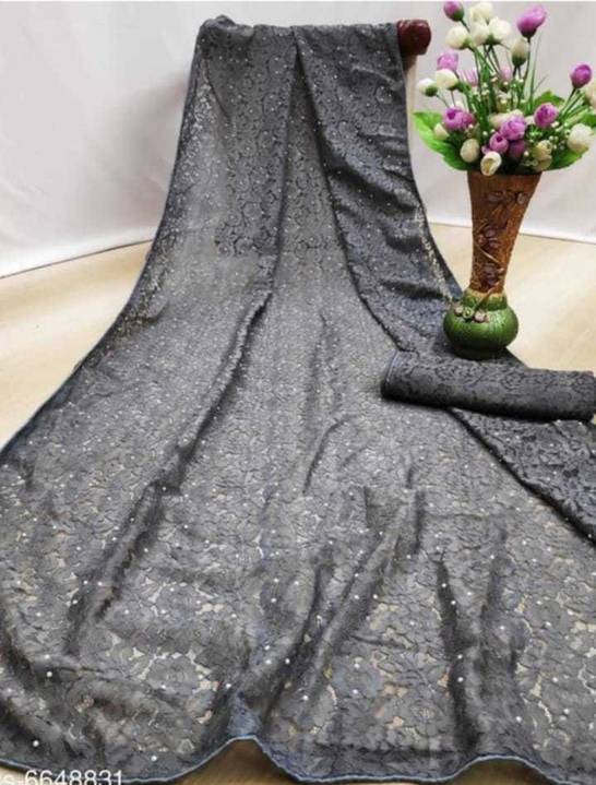 his saree exhibits stunning Casual look. To complete the look same fabric running blouse within the saree which is also needle worked with Great Quality thread., One of the most graceful costumes made from UnStitched Net fabric-the saree-the much loved choice for most Indian women can be worn in so many different ways.Allowing you to have your choice of blouse design., Comfort is where you find your skin at ease and that your body is breathing through the fabric, and specifically aim to give you fabric which is light-weighted and uniquely Unstitched., Be it a festival or a wedding, sarees are a hot favourite worldwide. It also can be gifted to your family friends , colleagues, spouse or relatives they will surely thank you for this best gift.