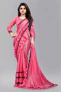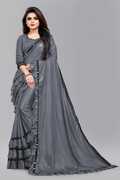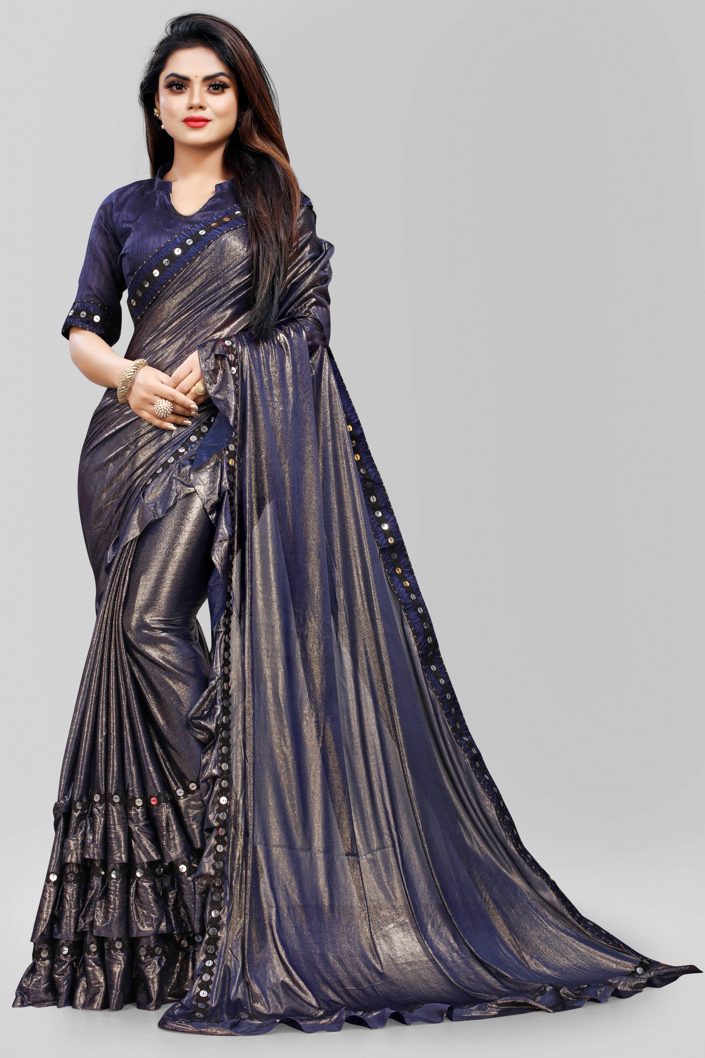 TVISHAFASHION Solid/Plain Bollywood Lycra Blend Saree (Blue)