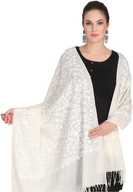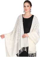 Tweedle Pure Wool Embroidered Women Shawl (White)