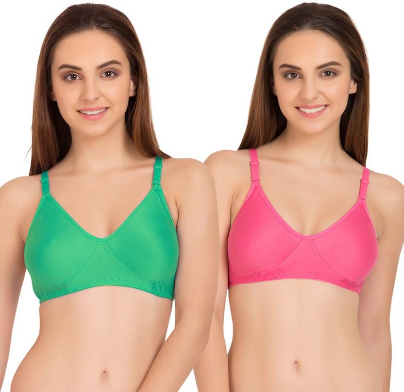 TWEENS by Belle Lingeries Pack of 2 Women T-Shirt Non Padded Bra (Green, Pink)