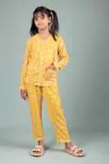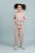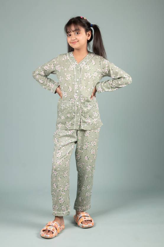 Add a dash of style and fun to comfort in our kids sleepwear range. Our Nightsuit is styled with a collar and contrast button piping detail, shirt and pajama is sure to make your little girl jump with joy. The kids nightwear is made with the pure rayon fabric that is Soft feel and breathability ensures lasting comfort. The printed Nightwear Set consists of top and pyjamas has a collar neck, long sleeves has front button closure with attached on patch pocket. Bottom pajama has elasticated drawstring.