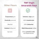 TWF Virgin Amaranth Flour is made from 100% whole, unprocessed amaranth grains, retaining their natural protein, fibre, and essential micronutrients for maximum nutrition. Rich in plant-based protein, calcium, iron, and antioxidants, it supports strong bones, better immunity, and overall wellness. Naturally gluten-free and easy to digest, amaranth flour is perfect for those with dietary sensitivities or looking for healthier alternatives to refined flours. With its mildly nutty flavor, it blends well into rotis, parathas, dosas, pancakes, baked goods, and even traditional sweets. Stone-ground to preserve purity and freshness, Virgin Amaranth Flour is a wholesome, nutrient-dense choice for everyday healthy cooking.