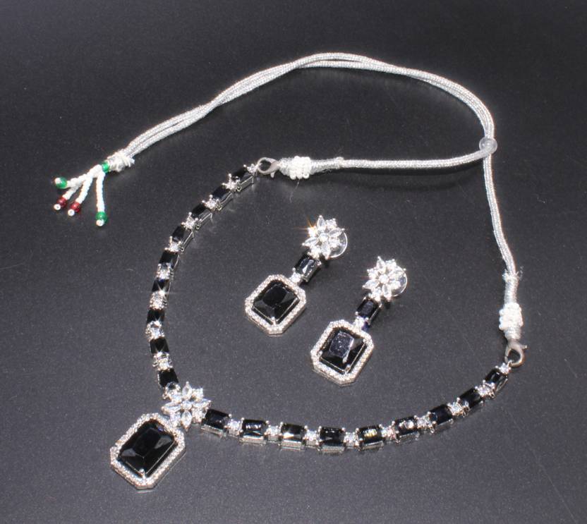 Black Color American Diamond Jewellery Set for Wedding , Party and Engagement for Girls and Women
