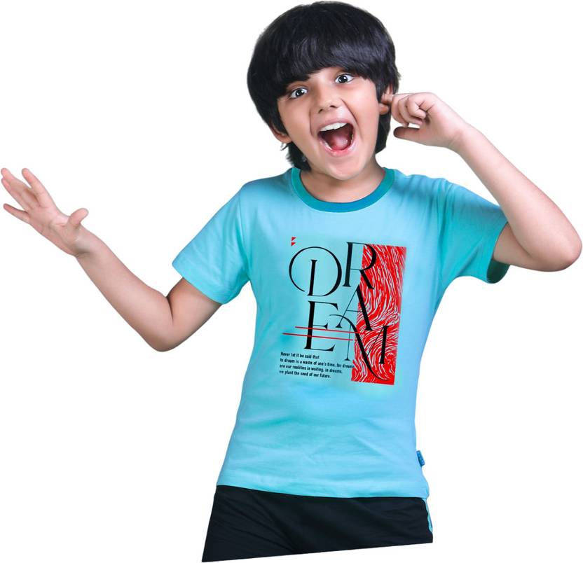 TWIN Boys Typography, Printed Pure Cotton Regular T Shirt (Light Blue, Pack of 1)