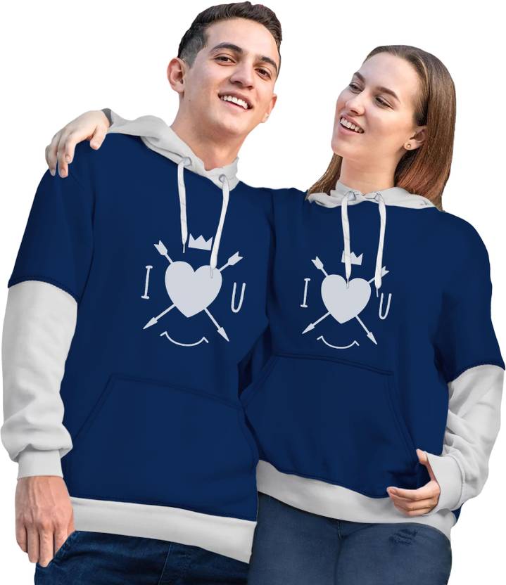 Couple Full Sleeve Solid Hooded Sweatshirt