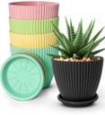 Twizel 5 Pack Flower Pots Outdoor Indoor Planters with Drainage Hole and Tray Saucer Plastic Vase (7 inch, Multicolor)