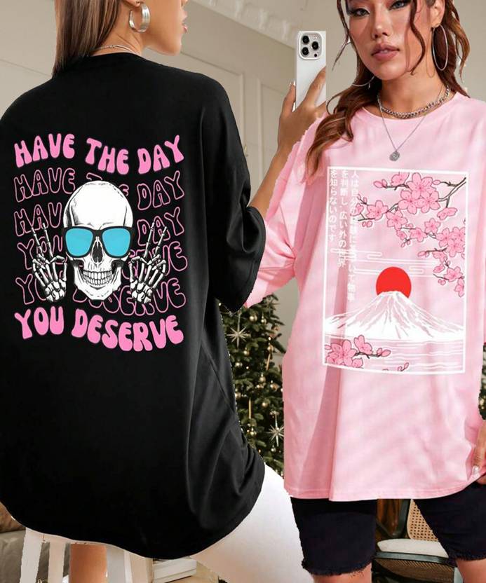 These oversize tshirt for women are the perfect addition to any wardrobe. The stylish Loose fit and drop Shoulder design make it an incredibly comfortable and flattering piece. These loose t shirts for women is perfect for any casual occasion, with its long length providing extra coverage and style. Whether dressed up with a skirt or dressed down with jeans, these printed tshirts for women will keep you looking fashionable and feeling great.