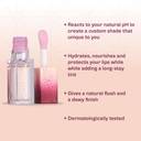 Introducing the first of its kind, color changing cheek & lip oil! Universally flattering product that reacts to your natural pH, giving you a personalized tint that is your own unique shade of pink. Made with skin-friendly ingredients to act as a treatment for your cheeks & lips.